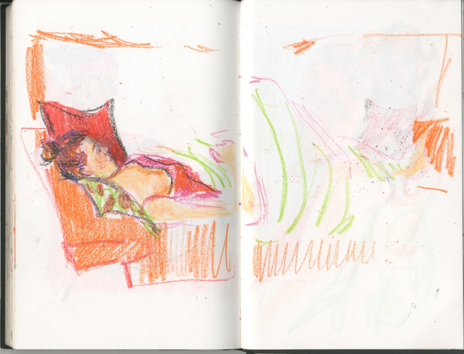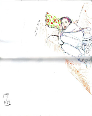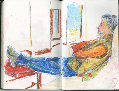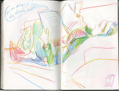 No llevo nada en mi retiro y ya me han prohibido que dibuje más siestas robadas. Empezaré a mirar por la ventana, o dibujaré de memoria, o de la tele, o como hoy... no dibujaré.