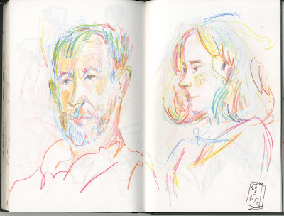 Desde que empecé a dibujar, la familia y los amigos han sido modelos repetidos. Como no siempre se quedan satisfechos, por si acaso,  yo suelo repetirles un mantra que aprendí en “De vuelta con el cuaderno” : “El parecido no es importante” ,que ya se ha convertido en todo un clásico para la gente a la que suelo dibujar,  tanto que ya no hace falta ni que yo lo diga, ellos se me adelantan.