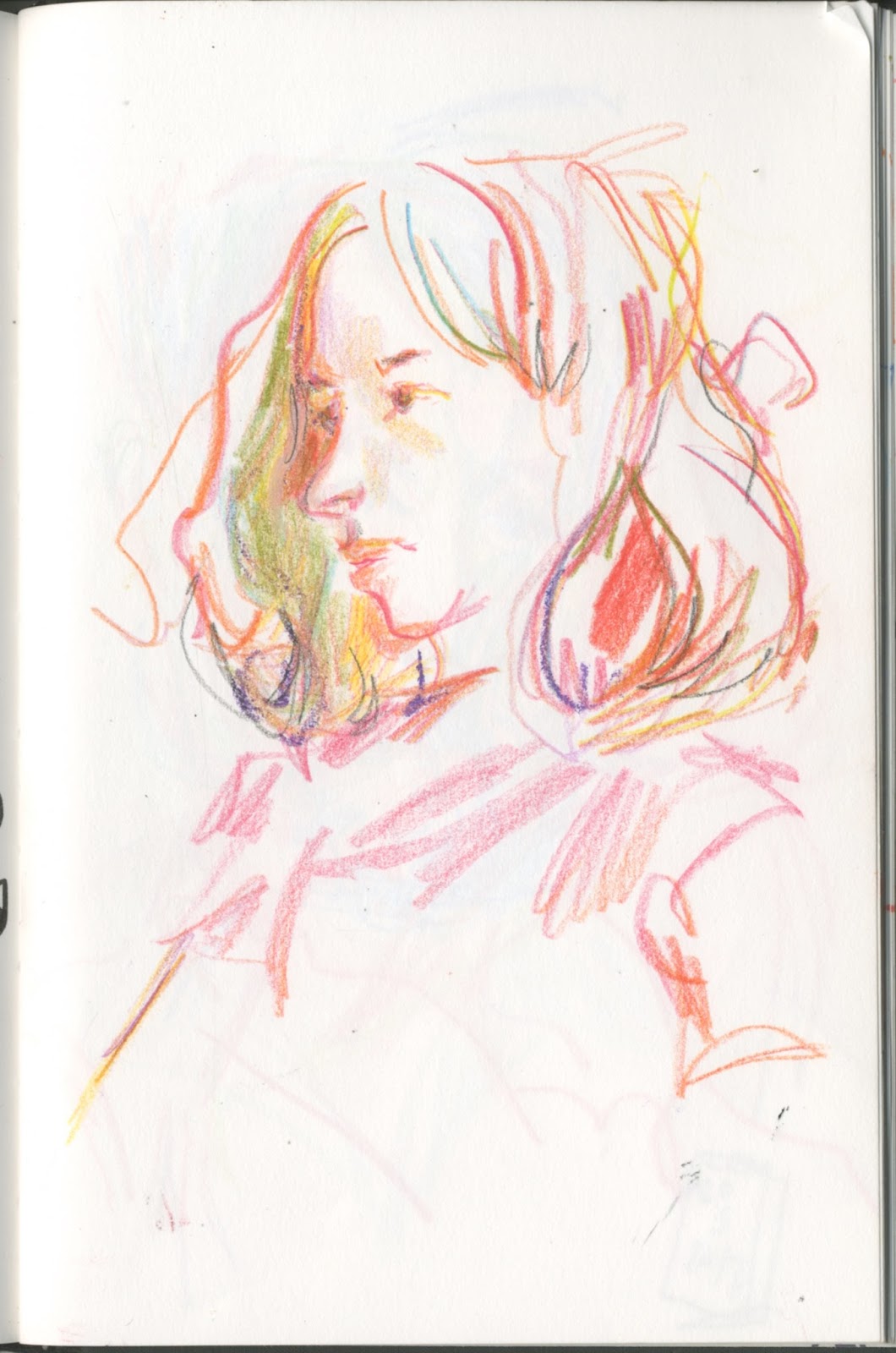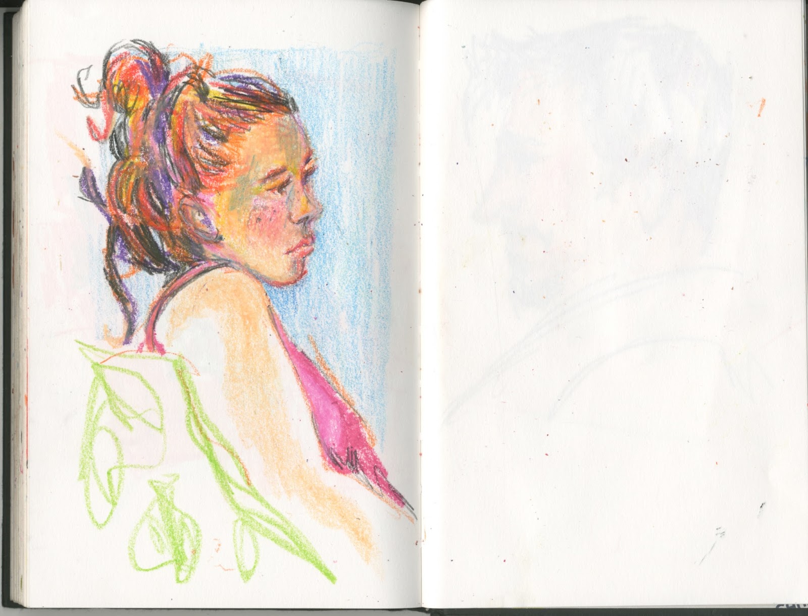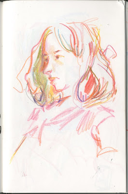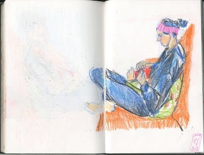 Los terceros martes de cada mes, a partir de este Mayo, se ha decidido acudir a dibujar-nos a la Cafeteria de la Caixa Forum de Zaragoza. Hasta Septiembre no me va a ser posible. Me dió mucha rabia no poder acudir en esta primera ocasión, así que me resarcí en casa y aproveché para jugar con los lápices de color grasos.