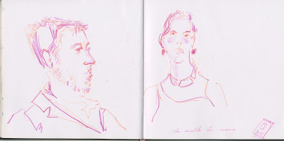 Colgando la entrada anterior me he dado cuenta que tengo varias no subidas; en borrador, así que sólo os subo la más reciente, del último viaje. Subí los dibujos hechos en exposiciones y Museos, pero no en plena batalla del día a día. Cuando estás en pausa, llama la atención el trajín que me llevo a veces.