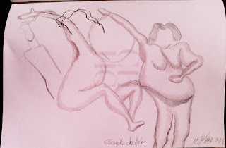 Jornadas muy interesantes las organizadas en la Escuela de Artes, en torno al cuerpo, arte y pensamiento. Nos dan la oportunidad de descubrir el cuerpo humano en movimiento y dibujar sobre ello. Pudiendo hacerlo sobre los cuerpos desnudos, sobre objetos o sobre papel o cuaderno, u otras variantes que se te puedan ocurrir. Un gozada y un aprendizaje continuo. Seguiremos aprendiendo. Incorporando música y danza.